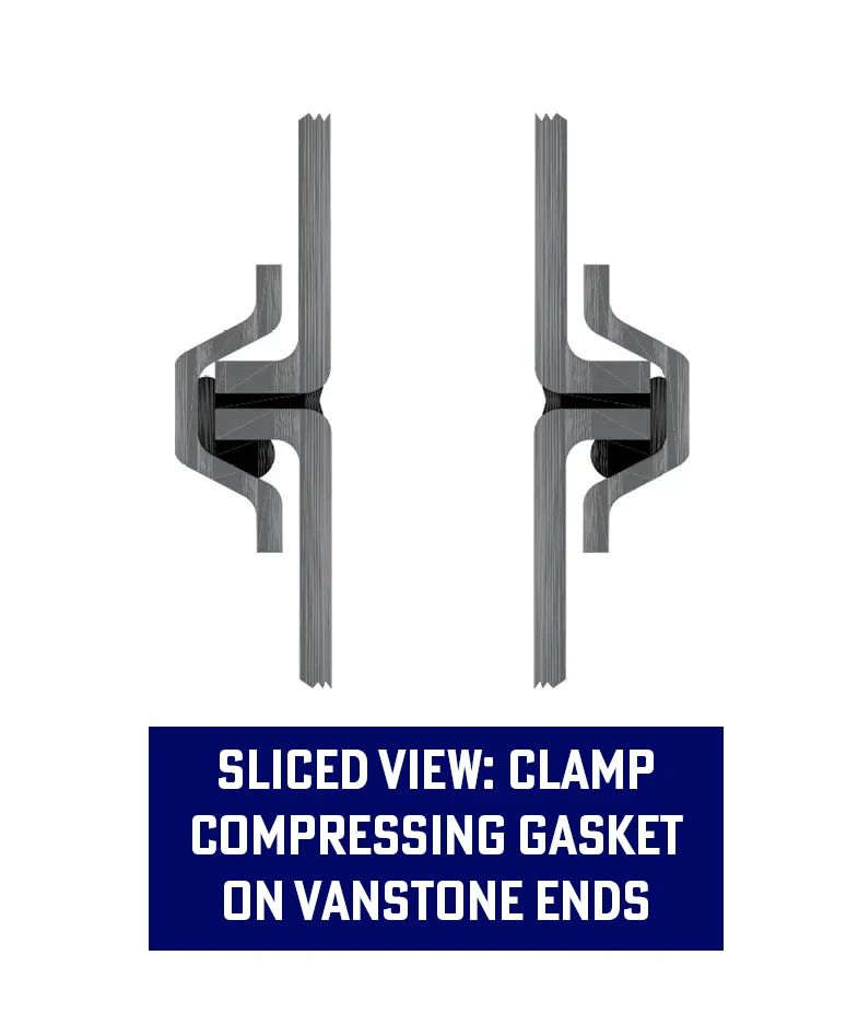 Traditional duct systems bury the gasket inside clamps, leading to uneven compression and eventual leaks. The Ultimate Seal® places a heavy-duty V-gasket directly on the flanged surface, where it can be uniformly compressed.